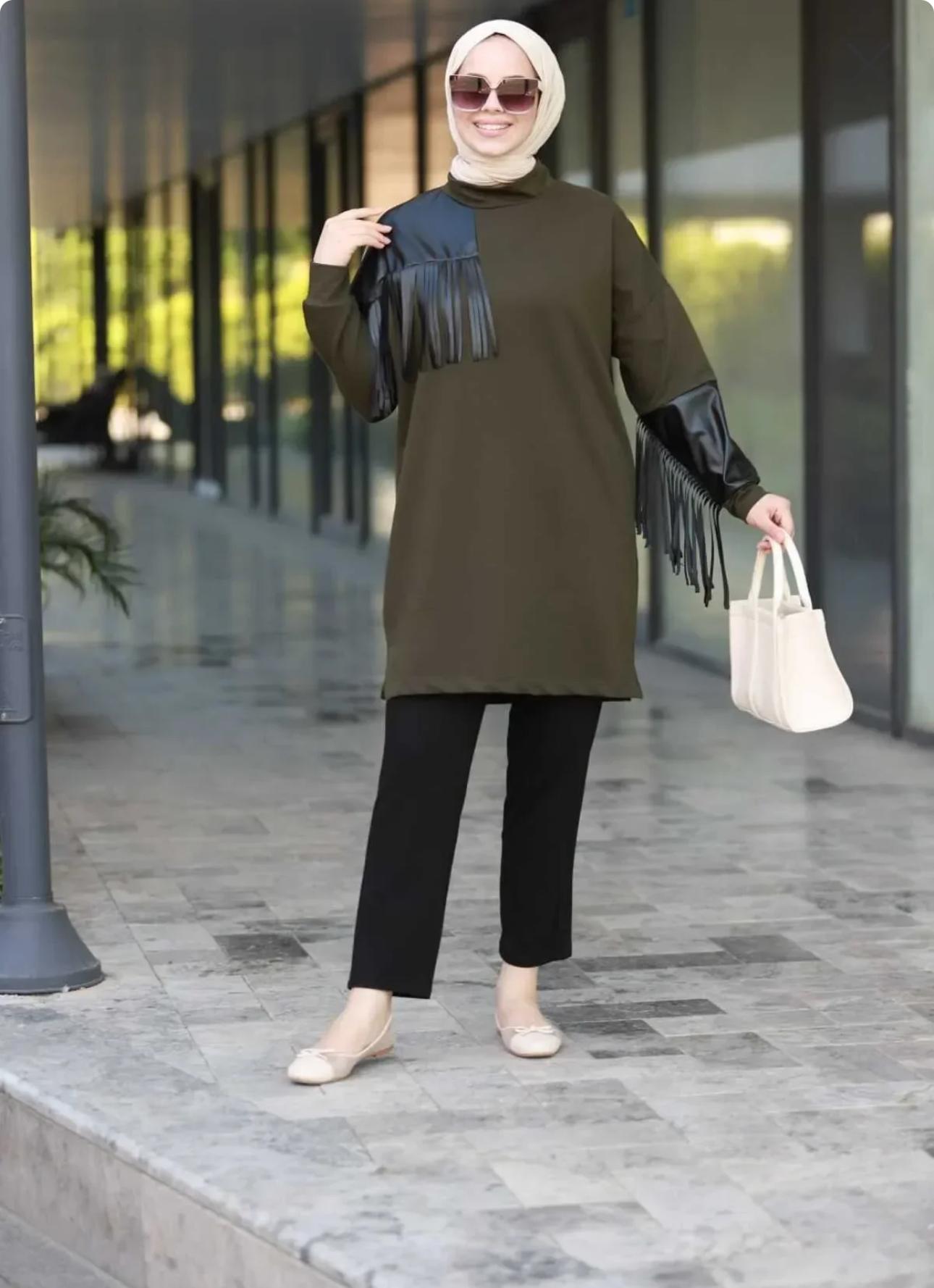 Deri Püsküllü İkili Takım, zarafetinizi ön plana çıkarırken, rahatlığınızdan da ödün vermez. Farklı kombin alternatifleri ile dilediğiniz tarzı yansıtmanıza yardımcı olur. Şık ve modern bir görünüm elde etmek isteyenlere hitap eden bu ikili takım, sezonun en trend parçalarından biridir. Siz de bu şık tasarımı gardırobunuza ekleyerek, stilinize yeni bir soluk katabilirsiniz!