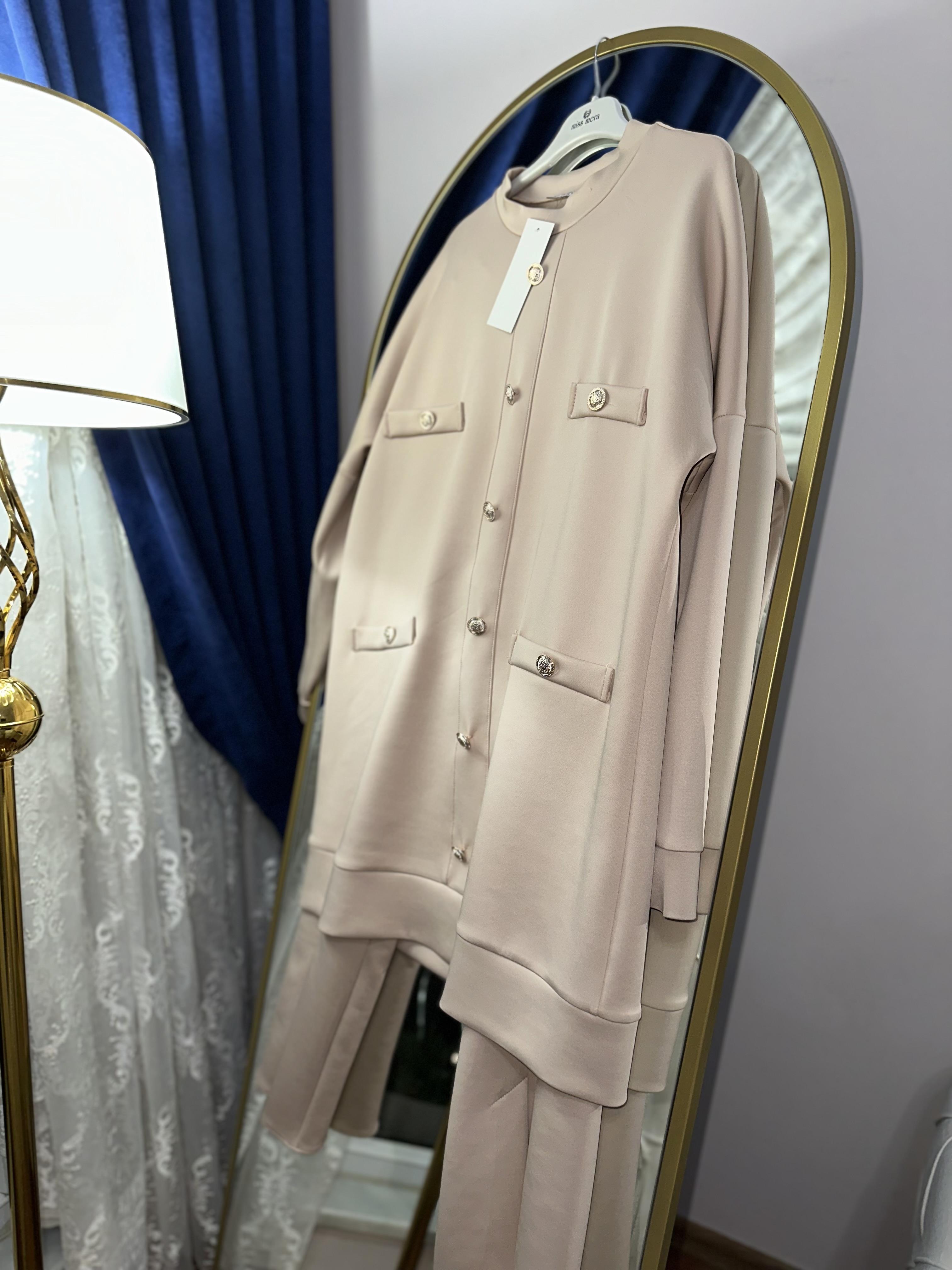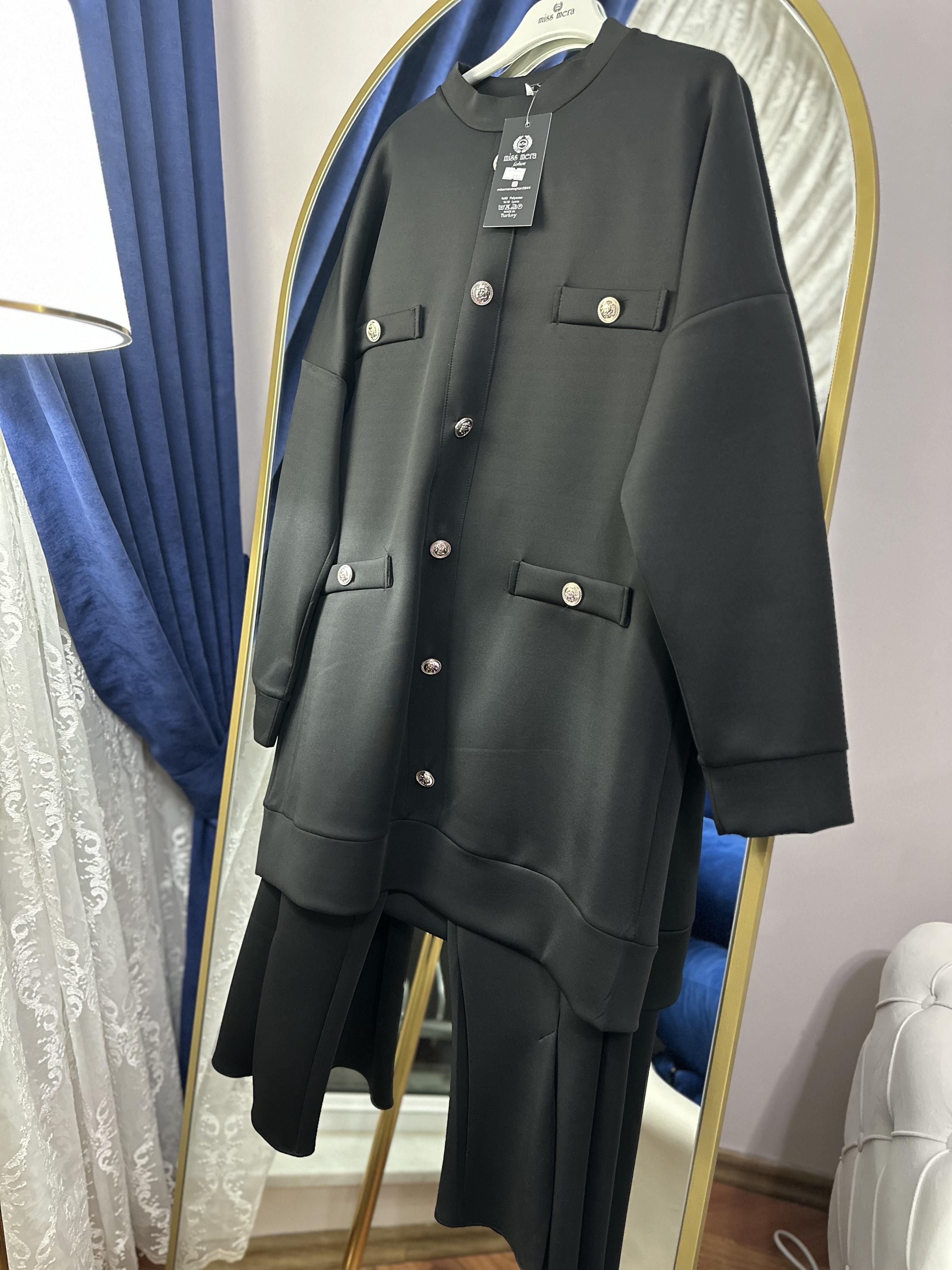 Şıklığı ve konforu bir arada sunan Gold Düğmeli İkili Takım, modern kadınların gardırobundaki vazgeçilmez parçalardan biri olmaya aday. Kendine güvenen ve stiline önem veren kadınlar için tasarlanan bu ikili takım, hem gündüz hem de gece kullanıma uygun olmasıyla her ortamda rahatça tercih edilebilir.