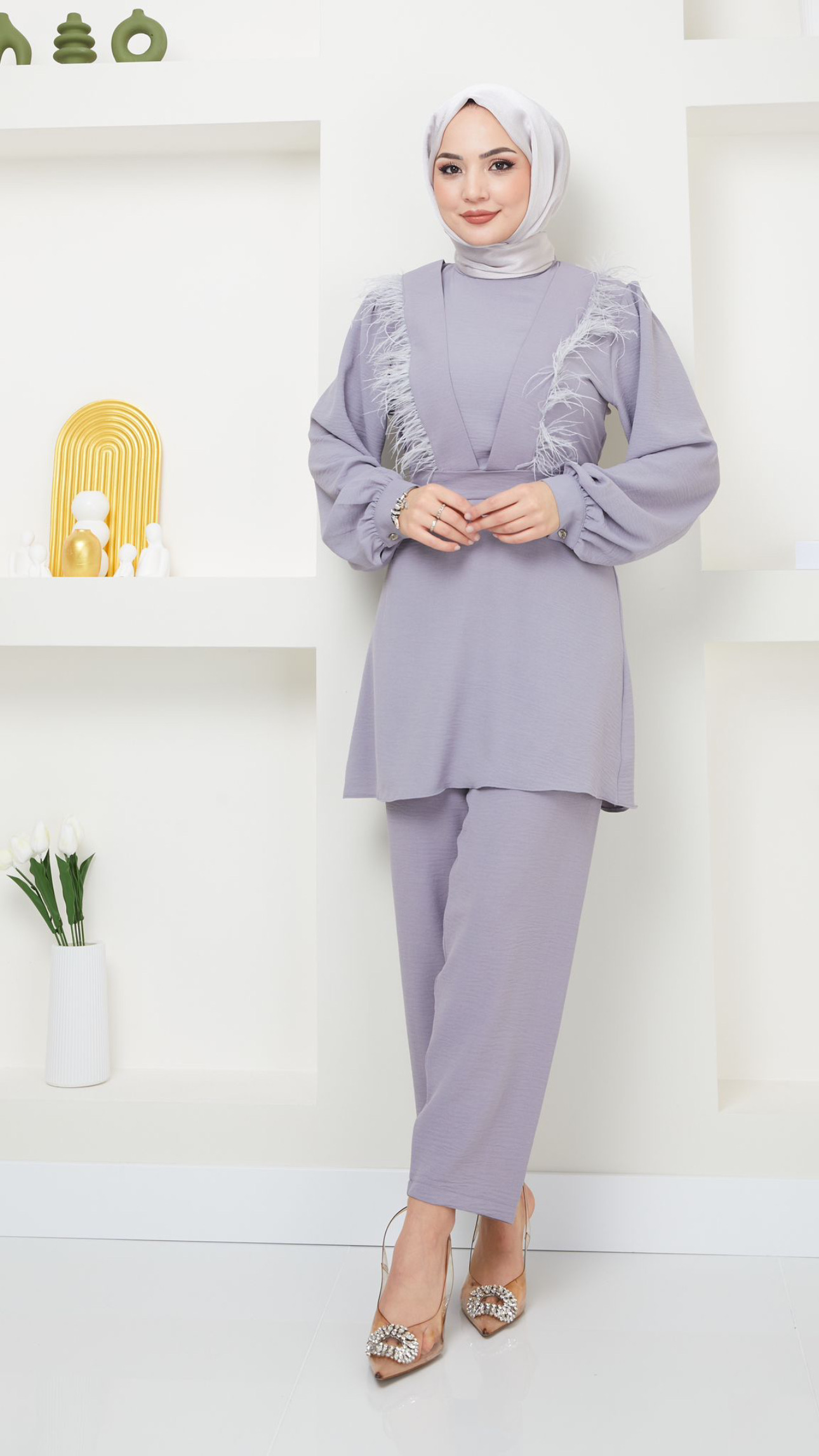 AYROBİN KUMAŞ İKİLİ TAKIM. PANTALON LASTİKLİ YAKA KISMI PÜSKÜL DETAYLI.