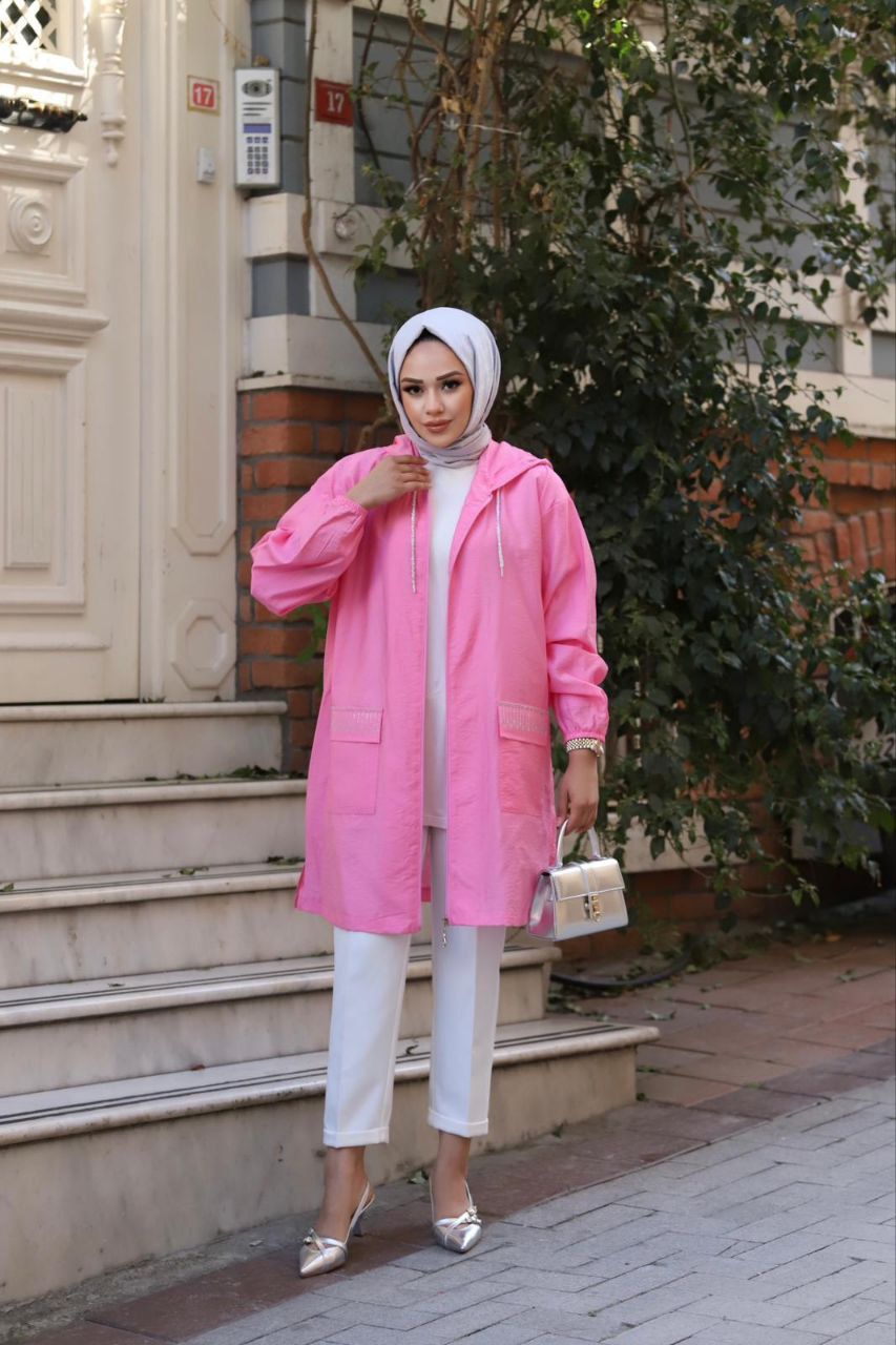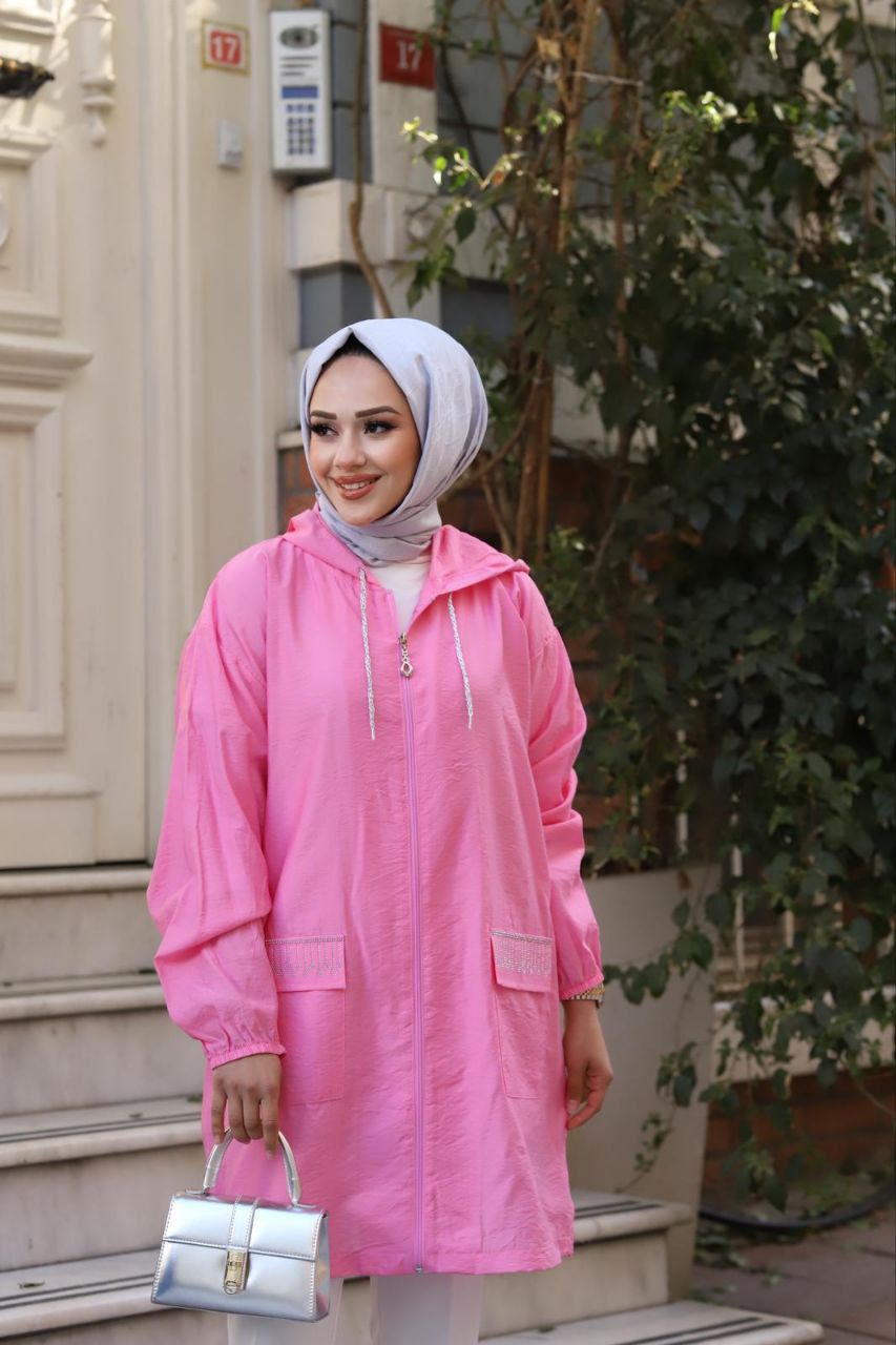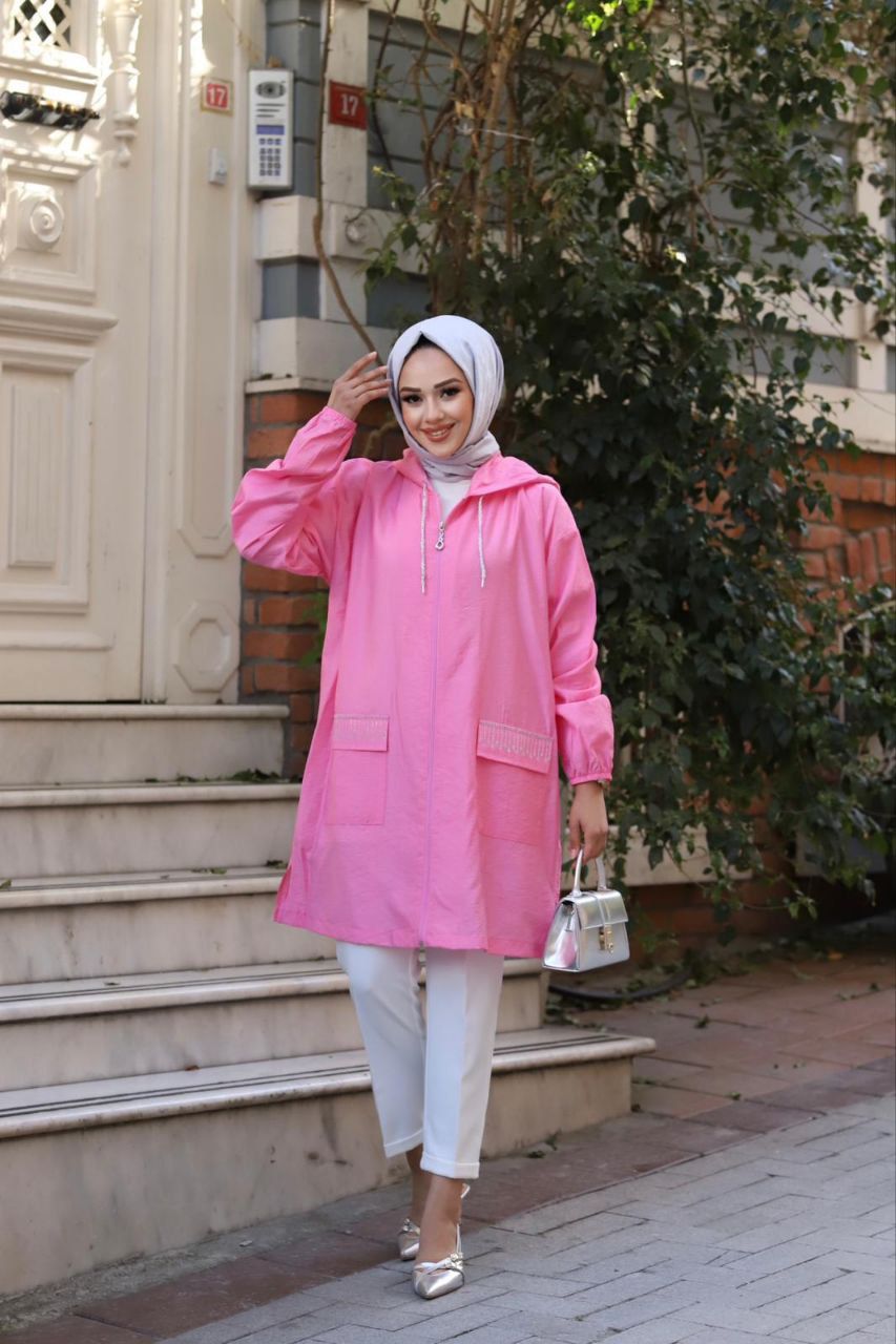 Taş cepli kapüşonlu tunik.