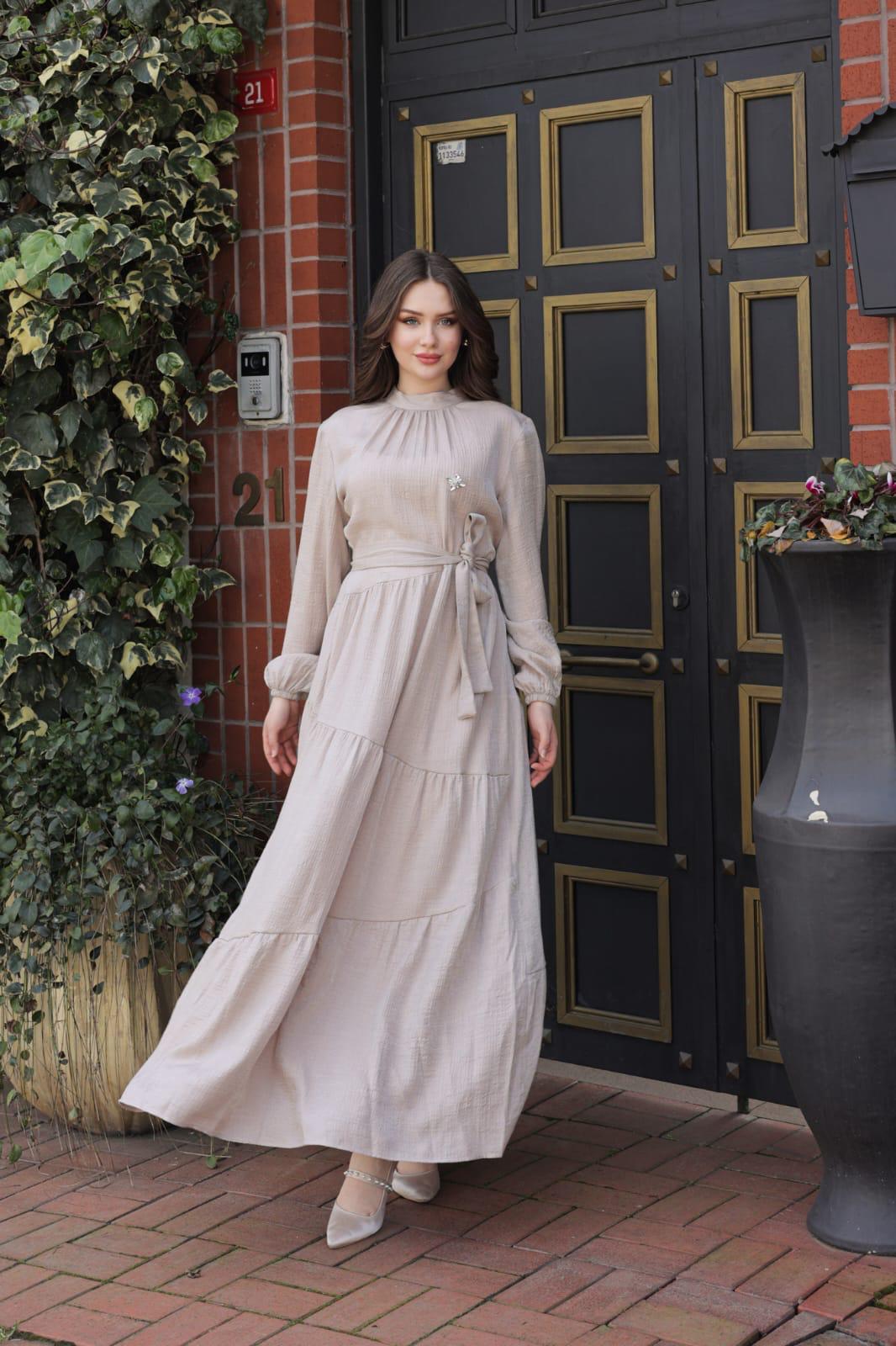 PAMUK SATEN SİMLİ KUMAŞ ELBİSE.